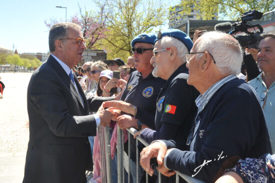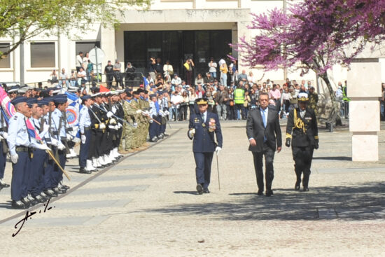 Depois, a figura maior do Estado Português, acompanhado pelo Sr. Ministro da Defesa, Dr. Nuno Melo, pelo Chefe do Estado-Maior-General das Forças Armadas, General João Cartaxo Alves e o Chefe da