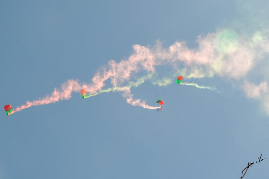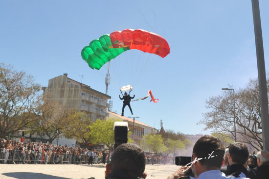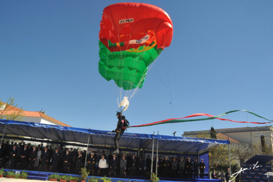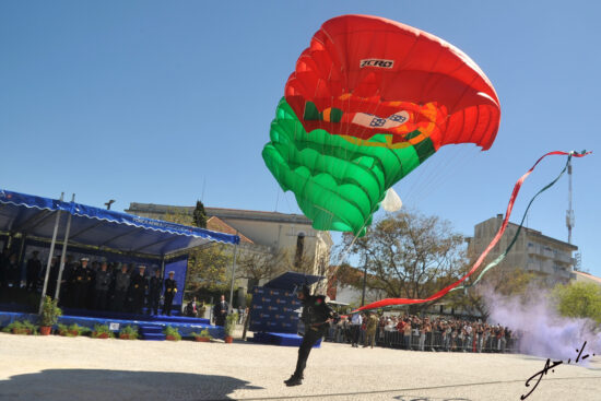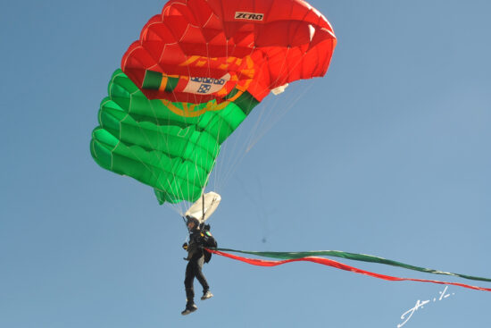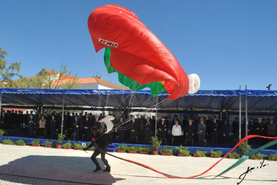 Aqui, há a destacar o momento da aterragem de militares da equipa de Paraquedistas Falcões Negros do Exército português, que transportaram a Bandeira Nacional a qual foi depois dobrada e